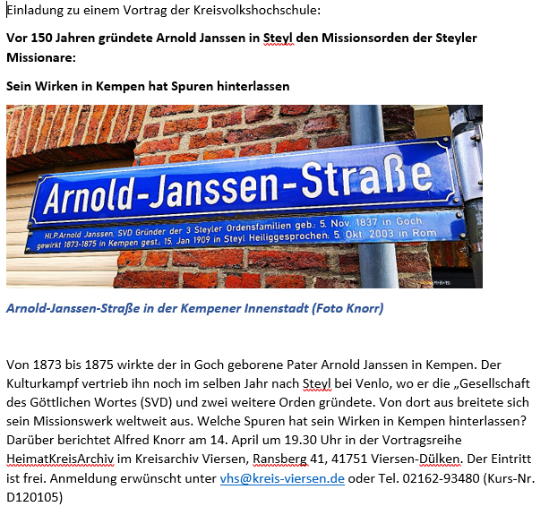 Auf Einladung der Abtei Mariendonk besuchte eine Gruppe von interessierter Mitglieder die Kirche und das Archiv. Einen besonderen Dank gilt Schwester Benedikta die diesen Besuch vorbereitet und geleitet hat, es war sehr interessant für alle Teilnehmer.